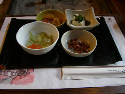 左:さー蔵店構え 右:前菜(自家製の甘納豆が美味)