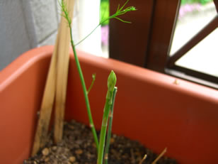 アスパラは、直径2ミリくらいでまだ食べるようなレベルじゃないです。あと2年ですから・・・