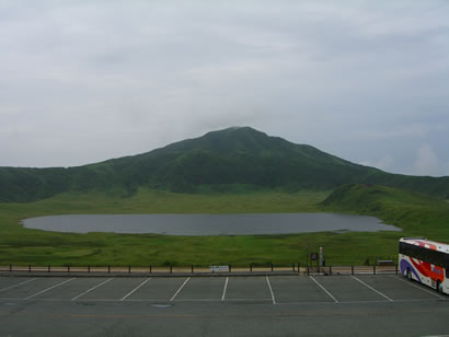 阿蘇YHの前の道を行けば阿蘇山はすぐ。とりあえずは、草千里へ。とちゅうガスが立ちこめやっぱり無理かな~と思ったら、草千里に着くとガスはなくなった(晴れちゃいないが)。