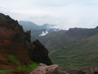 左:これが砂千里ヶ浜 右:お~火口からの水蒸気が見えます