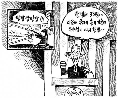 米大学乱射:ソウル新聞の漫評に非難殺到 日本人が流布している でも話題になってますね。